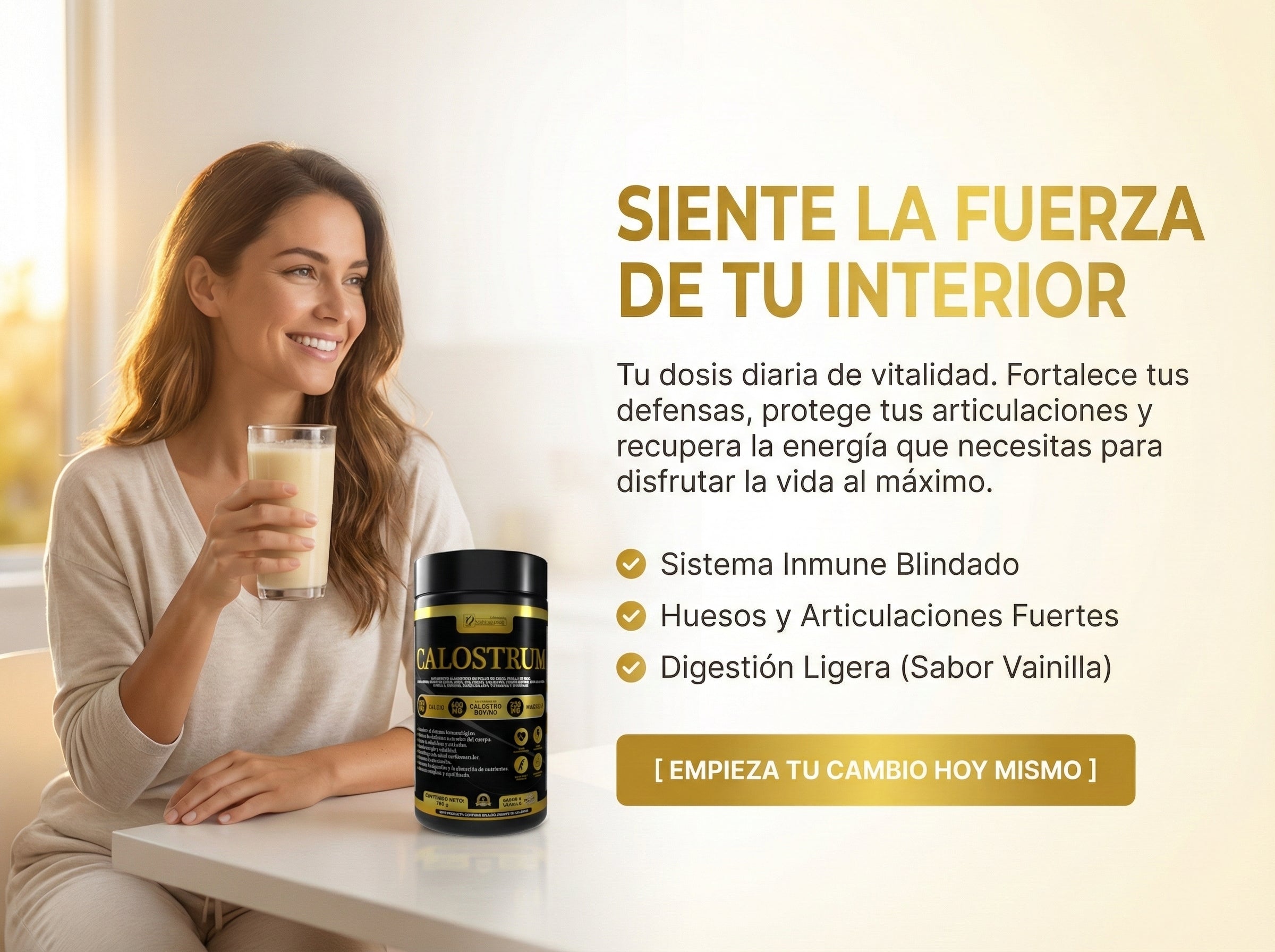 Después de una cirugía bajé mucho de peso y me sentí débil. Mi nutricionista me recomendó buscar algo con calostro y proteína. Este producto me ayudó a recuperar mi masa muscular y mis fuerzas mucho más rápido de lo que esperaba. ¡Muy efectivo